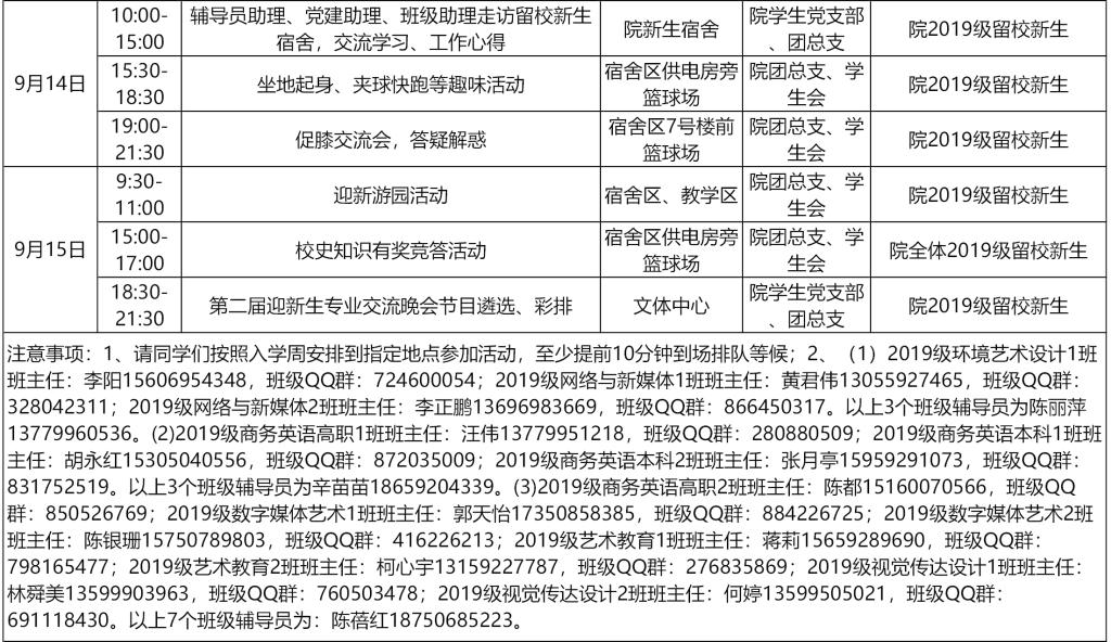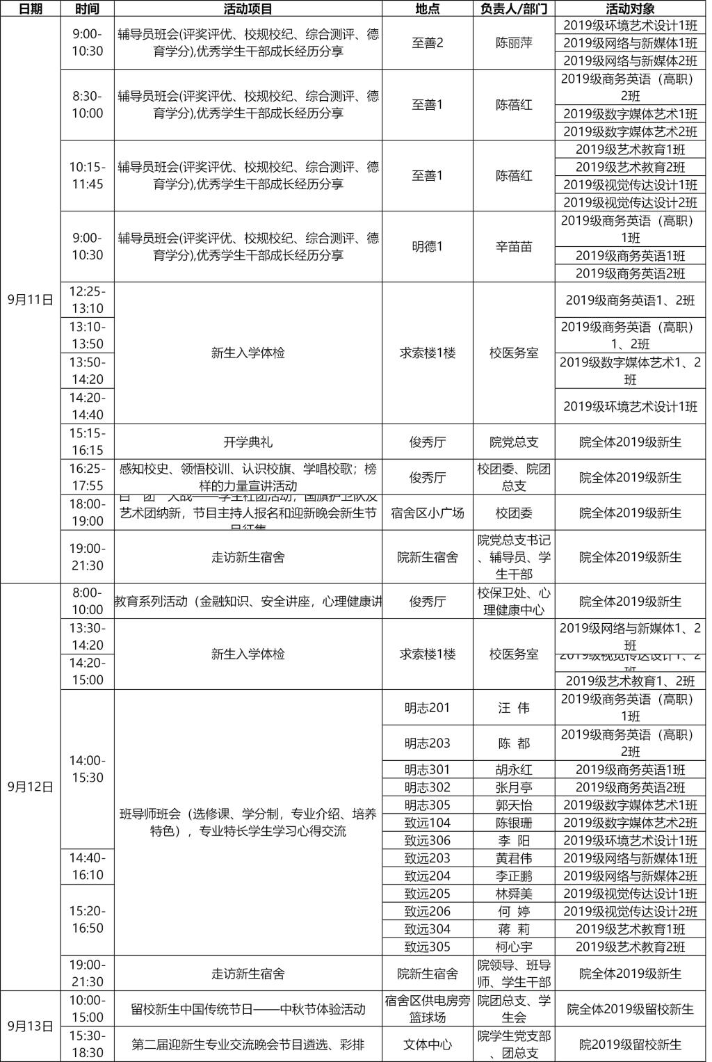 环境与公共健康学院2019级新生入学教育周活动安排表